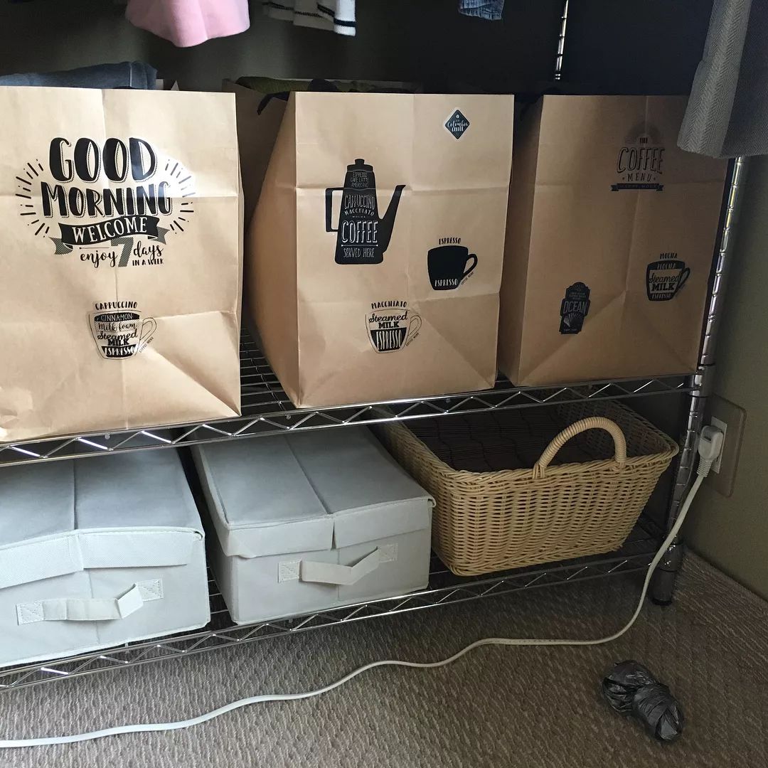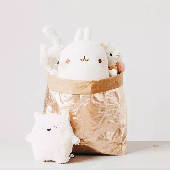纸袋的种类非常多,质地也千变万化各不相同,很多看起来需要用收纳盒收纳的物品,其实用纸袋收纳也非常适合。