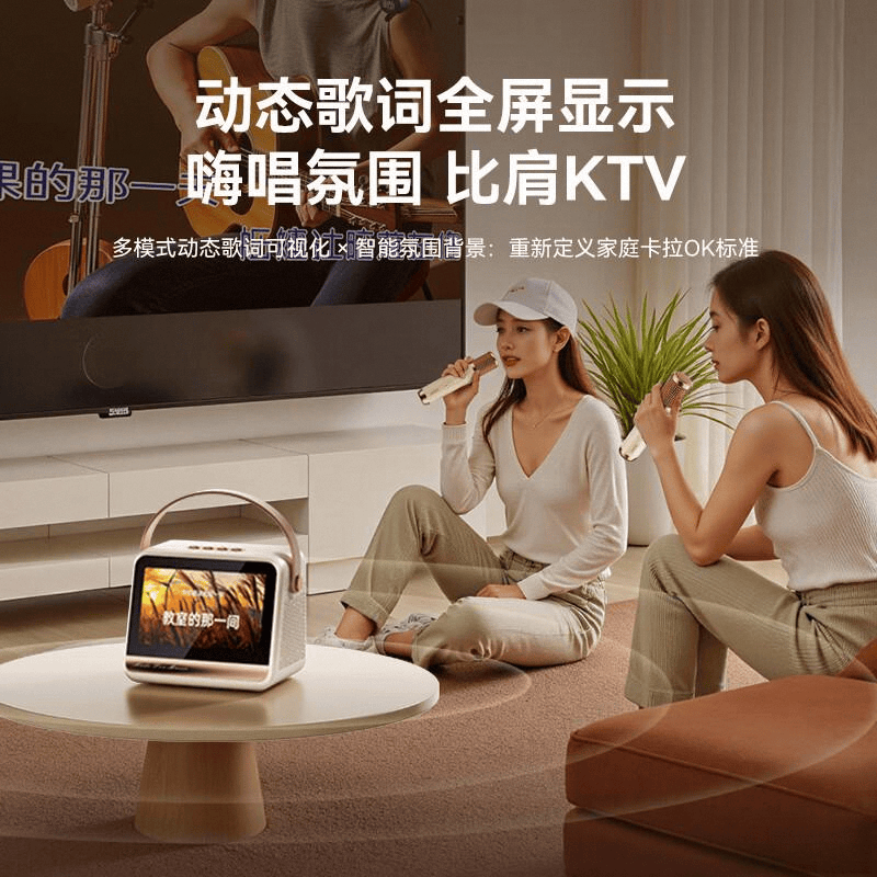 双麦克风配置让多人同时唱歌成为可能,极大增强了互动乐趣,非常适合家庭聚会和朋友聚餐,营造热闹欢快的气氛。